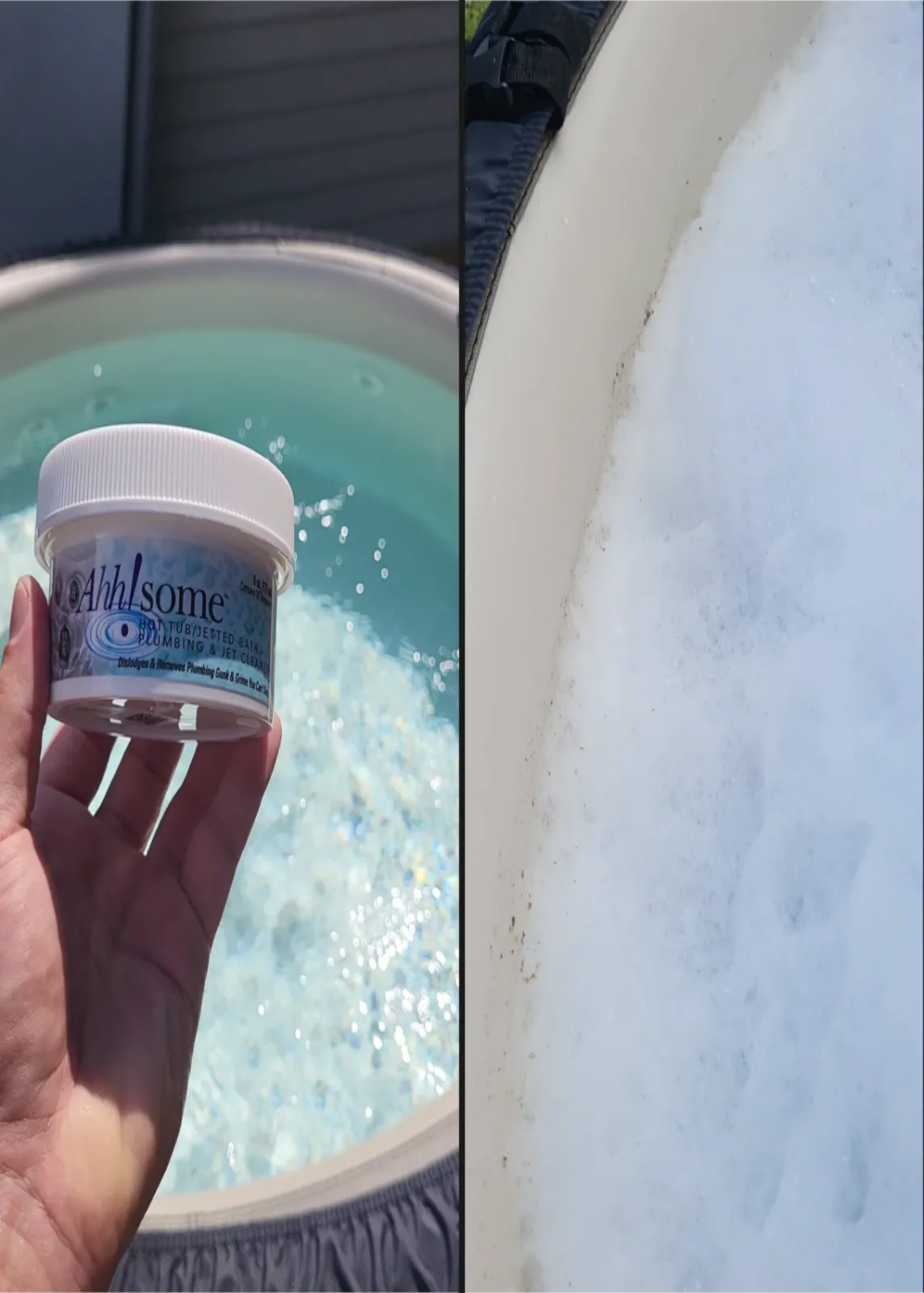 The second phase of our cleaning procedure truly sets us apart from the norm. Using our secret weapon, 'Ahh-some,' we ensure a comprehensive sanitation of the spa's entire plumbing network. This rigorous cleanse promises a tub jet system free from any bio-hazards. A cleanliness promise that, let's face it, your average hotel or community hot tub might not boast of!